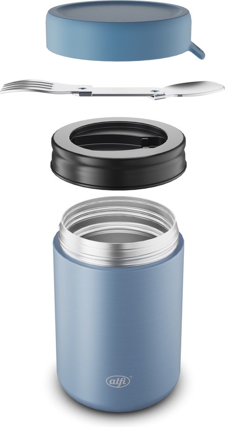 Iso Food Mug in matte trendy stijl: Het to-go accessoire van alfi® houdt zelfgemaakte maaltijden tot 5 uur warm of tot 10 uur gekoeld. En het heeft nog een geweldige extra te bieden: een praktische vork en lepel combinatie - de lepel is geïntegreerd in het deksel voor gemakkelijke toegang. Dankzij de hoogwaardige roestvrijstalen behuizing van 0,35 liter en het siliconen deksel transporteert de ISO FOOD MUG al het voedsel betrouwbaar en absoluut lekvrij.