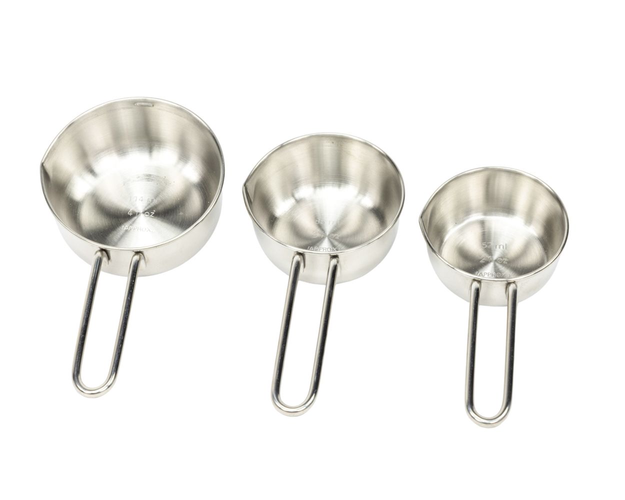 - Ø van de maatschepjes: 7,5 cm, 6,5 cm en 6 cm.