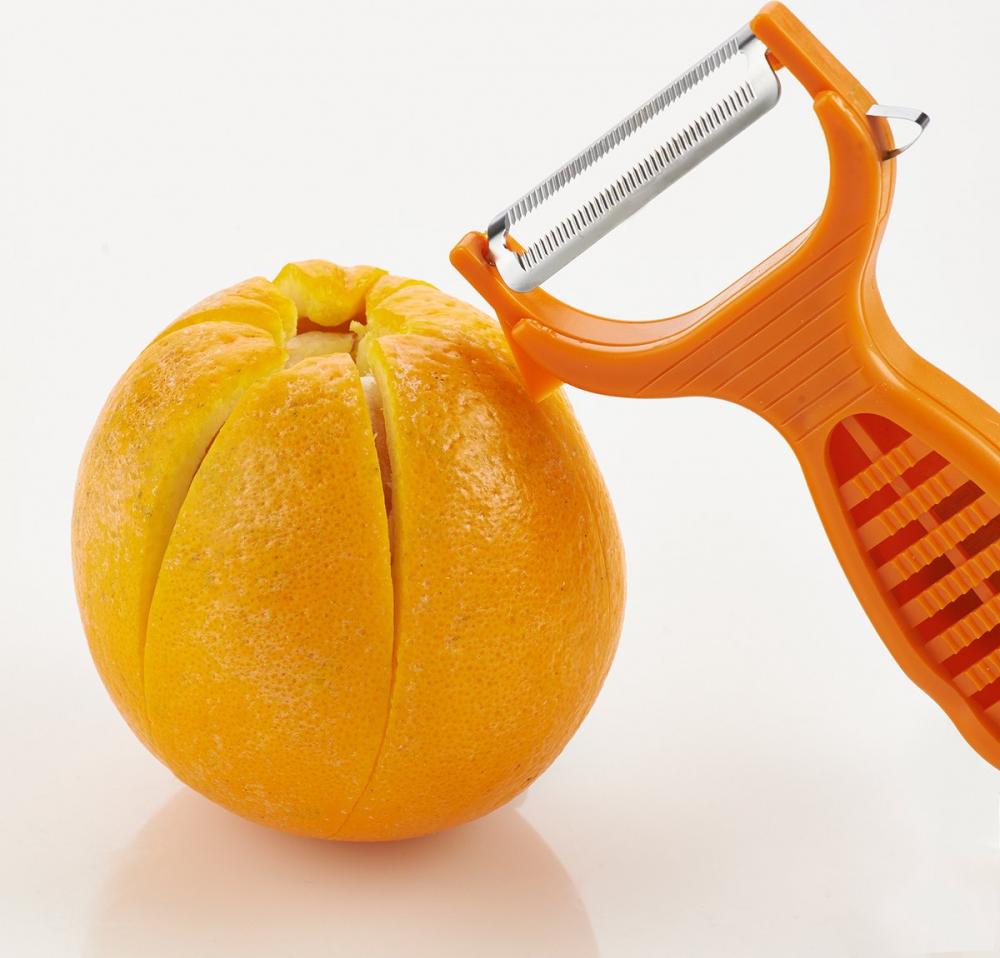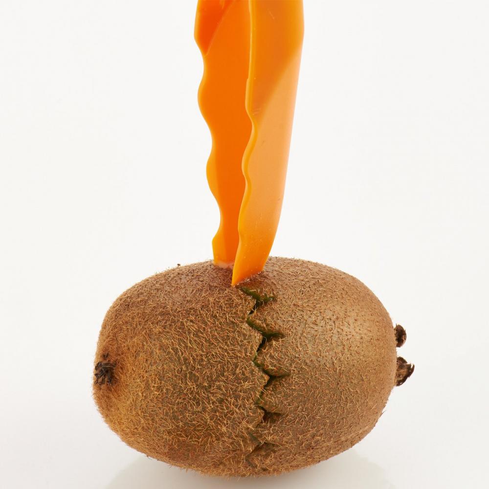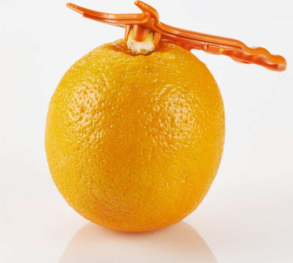 - Een plastic mesje als hulp bij het schillen van citrusvruchten.
