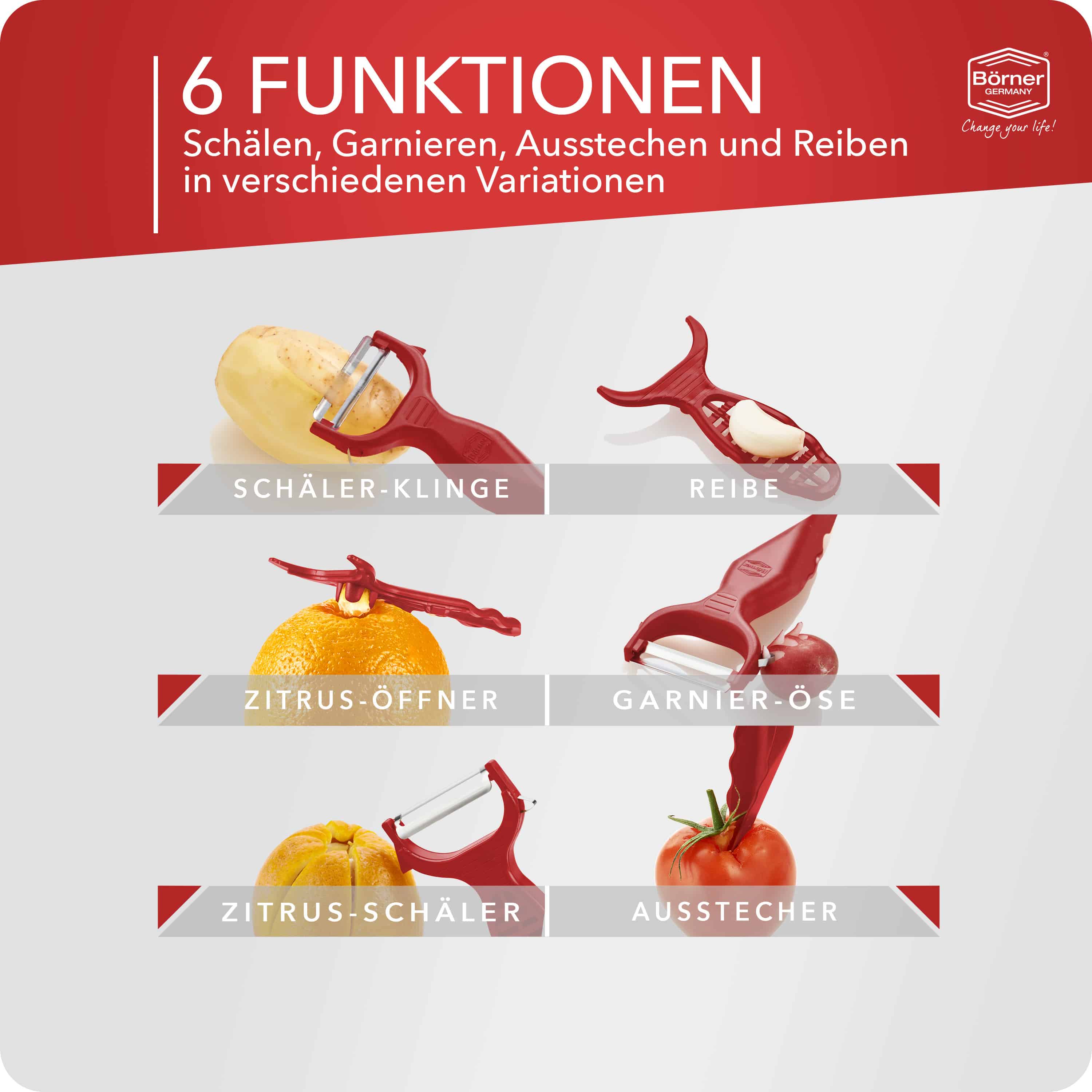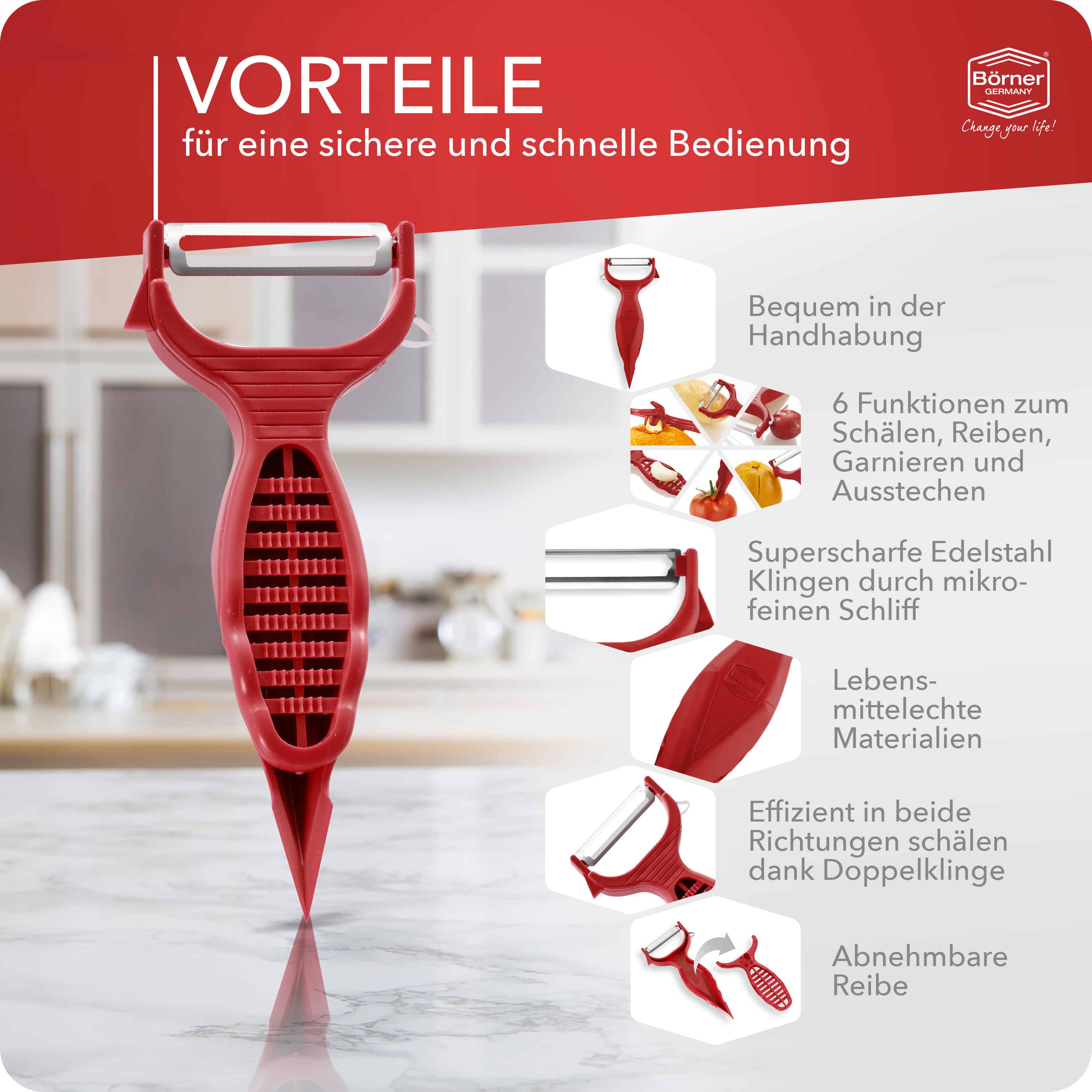 Börner 6-in-1 Groenteschiller – Schillen, Decoreren en Meer!