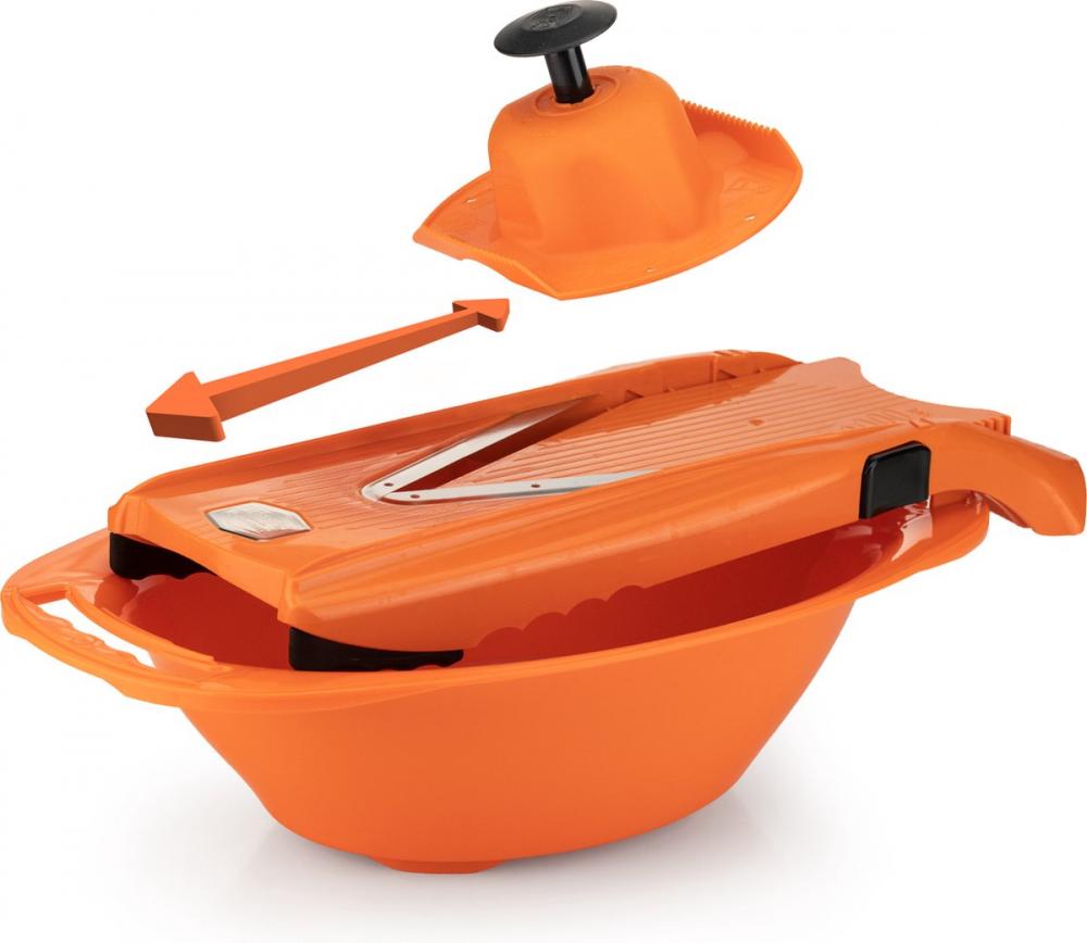 Gebruik deze functionele kom om uw salades te bereiden en uw gesneden groenten en fruit te verzamelen. De V5 PowerLine- mandoline past er perfect op. Deze kom is een ideaal accessoire.