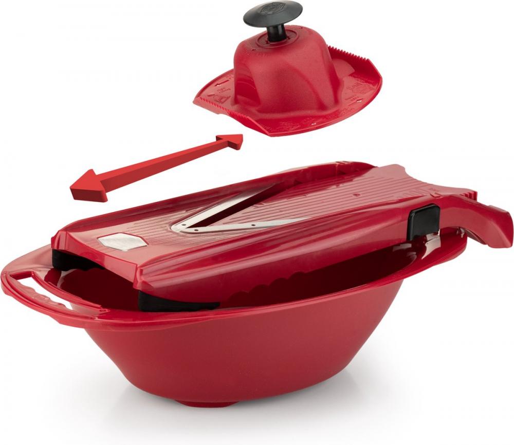 Gebruik deze functionele kom om uw salades te bereiden en uw gesneden groenten en fruit te verzamelen. De V5 PowerLine- mandoline past er perfect op. Deze kom is een ideaal accessoire.