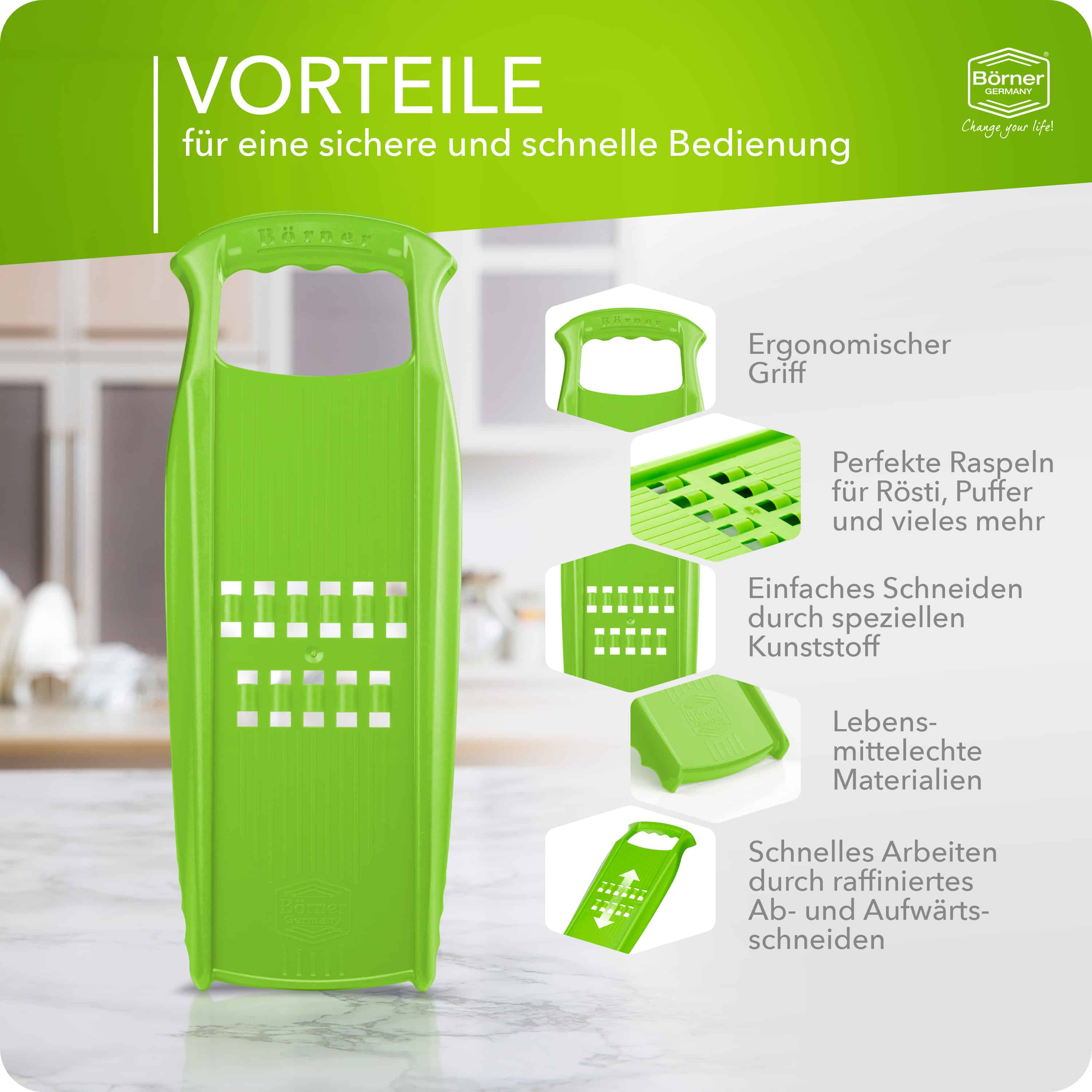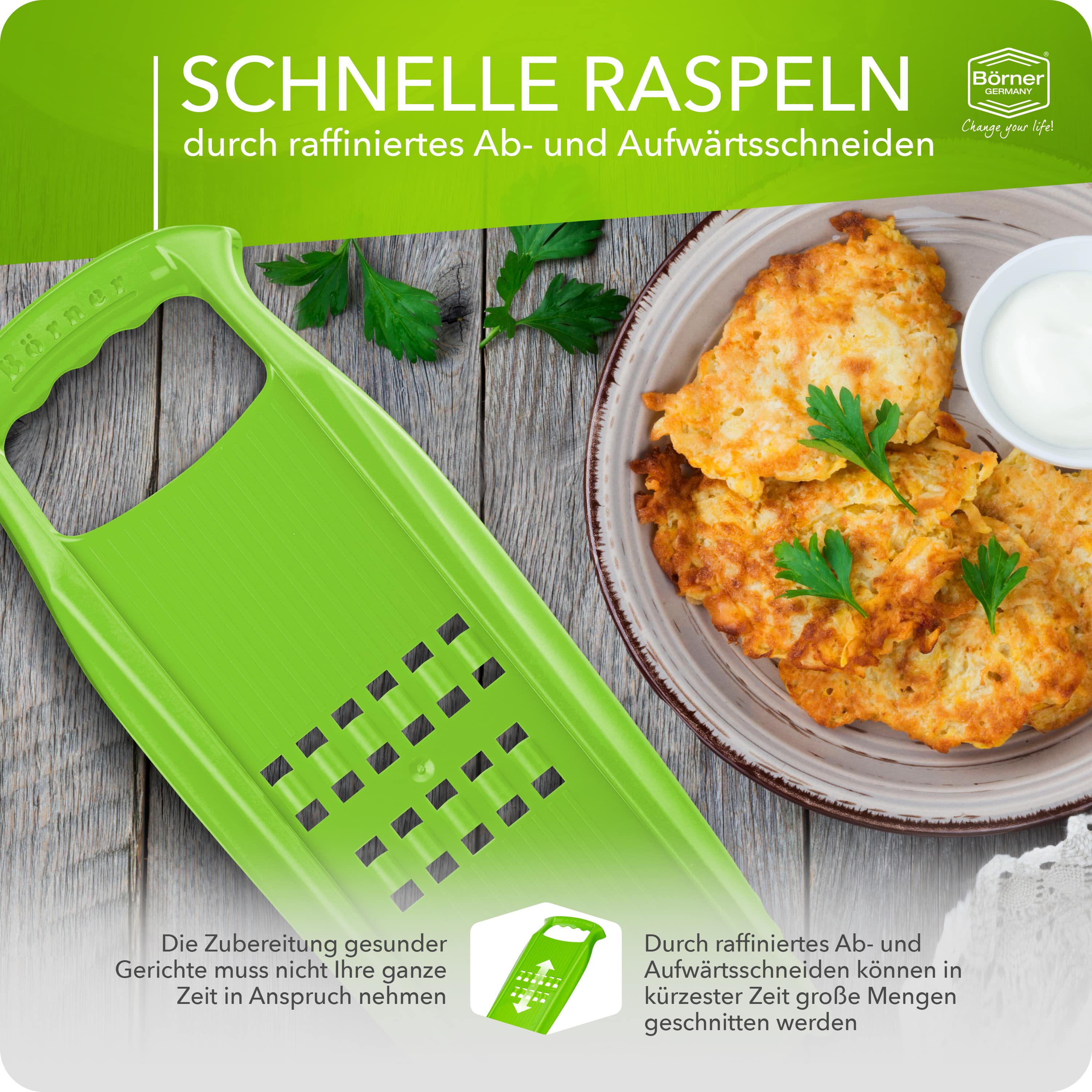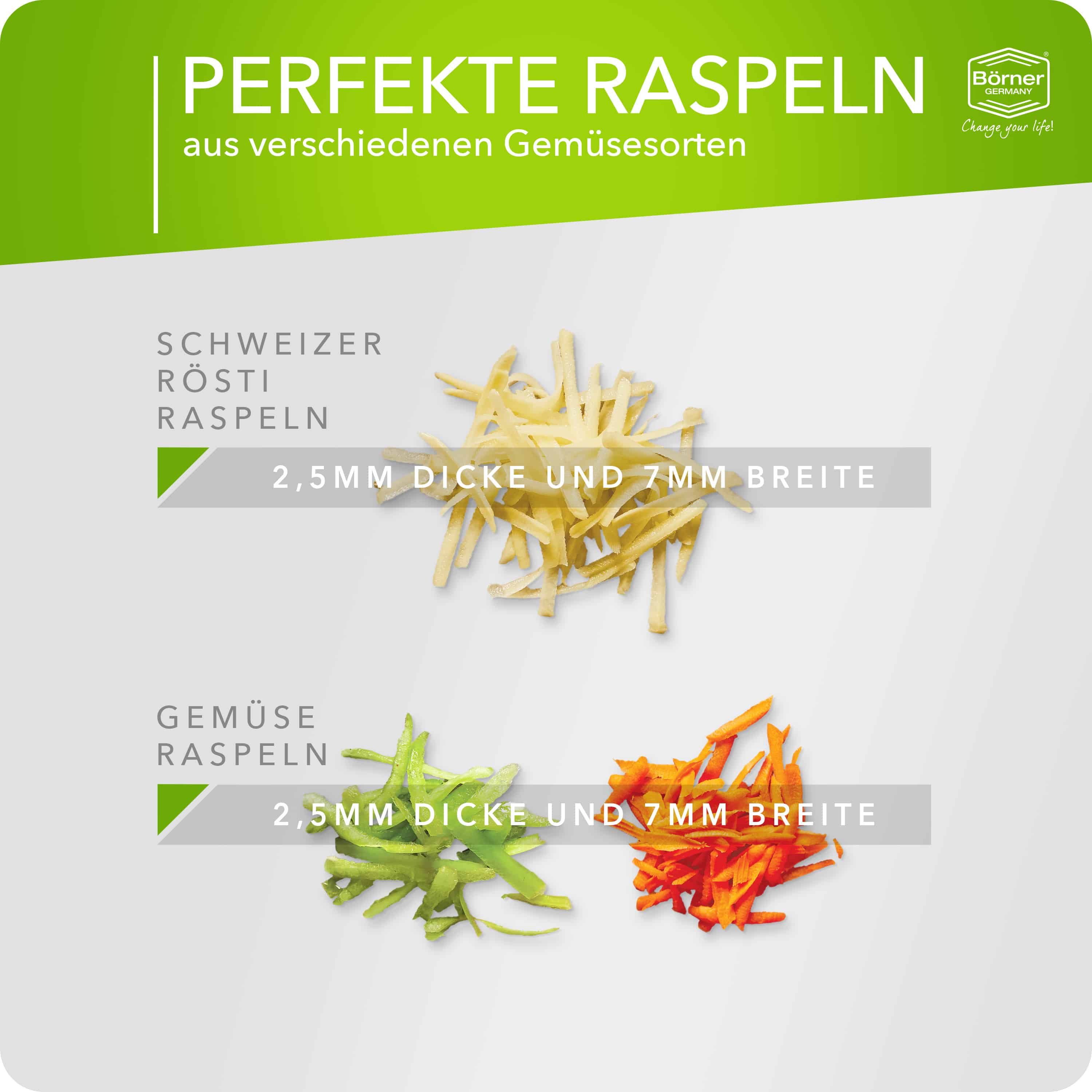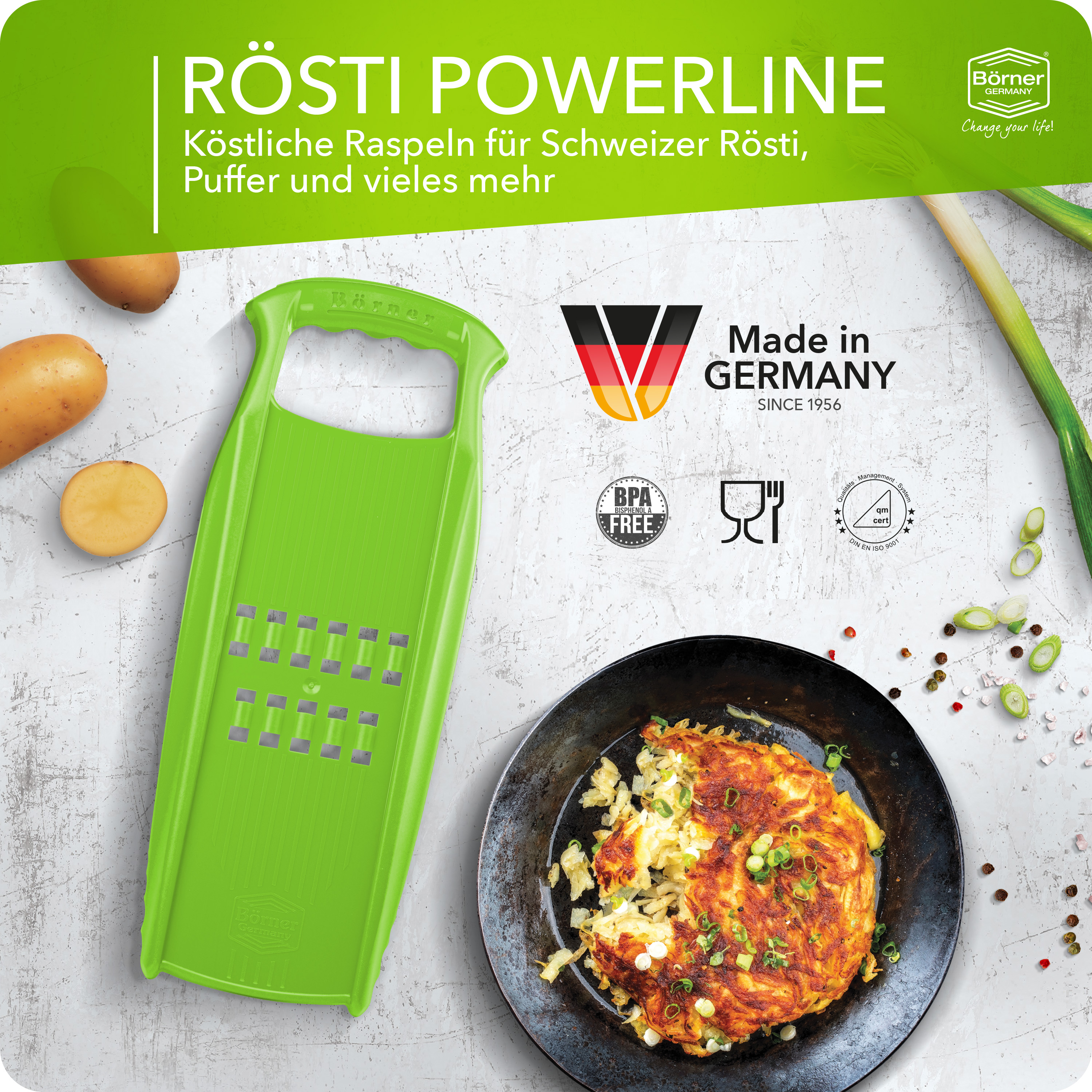 Deze Börner PowerLine rösti rasp is ideaal om in een handomdraai heerlijke rösti te maken. Deze röstirasp maakt het gemakkelijker om perfecte röstireepjes te maken voor lekkere aardappelrösti of om kaas te raspen.