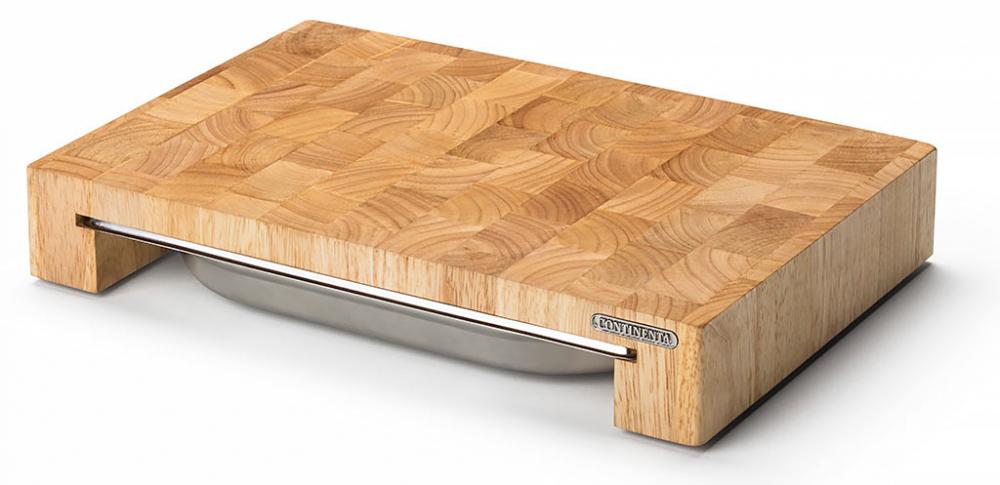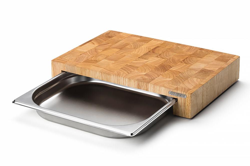 Continenta Snijplank met Inox Lade - Rubberwood - 39 x 27 x H6cm