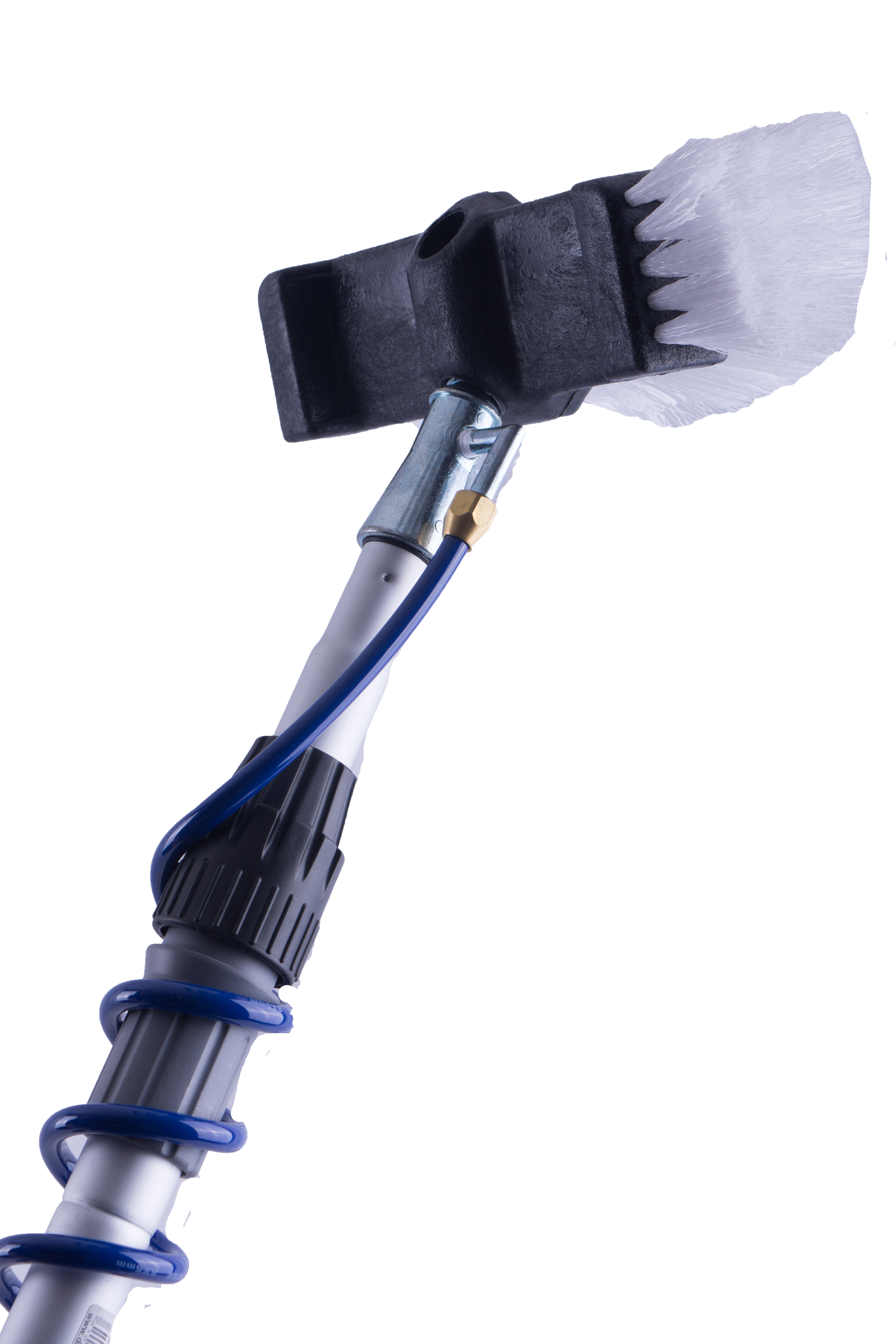- Monteer de borstel op de telescoopsteel en sluit de spiraal aan op uw tuinslang.