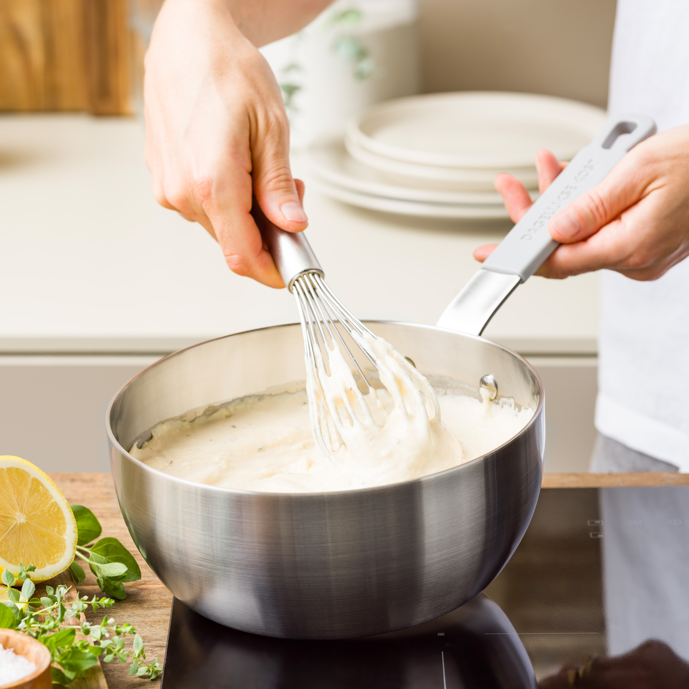 Dankzij de 3-laagse (3PLY) constructie met aluminium kern warmt de pan snel en gelijkmatig op. Geen hotspots, wel een constante temperatuur over het volledige oppervlak. Ideaal voor het bereiden van sauzen, sabayon, coulis, risotto en delicate bereidingen zoals beurre blanc.