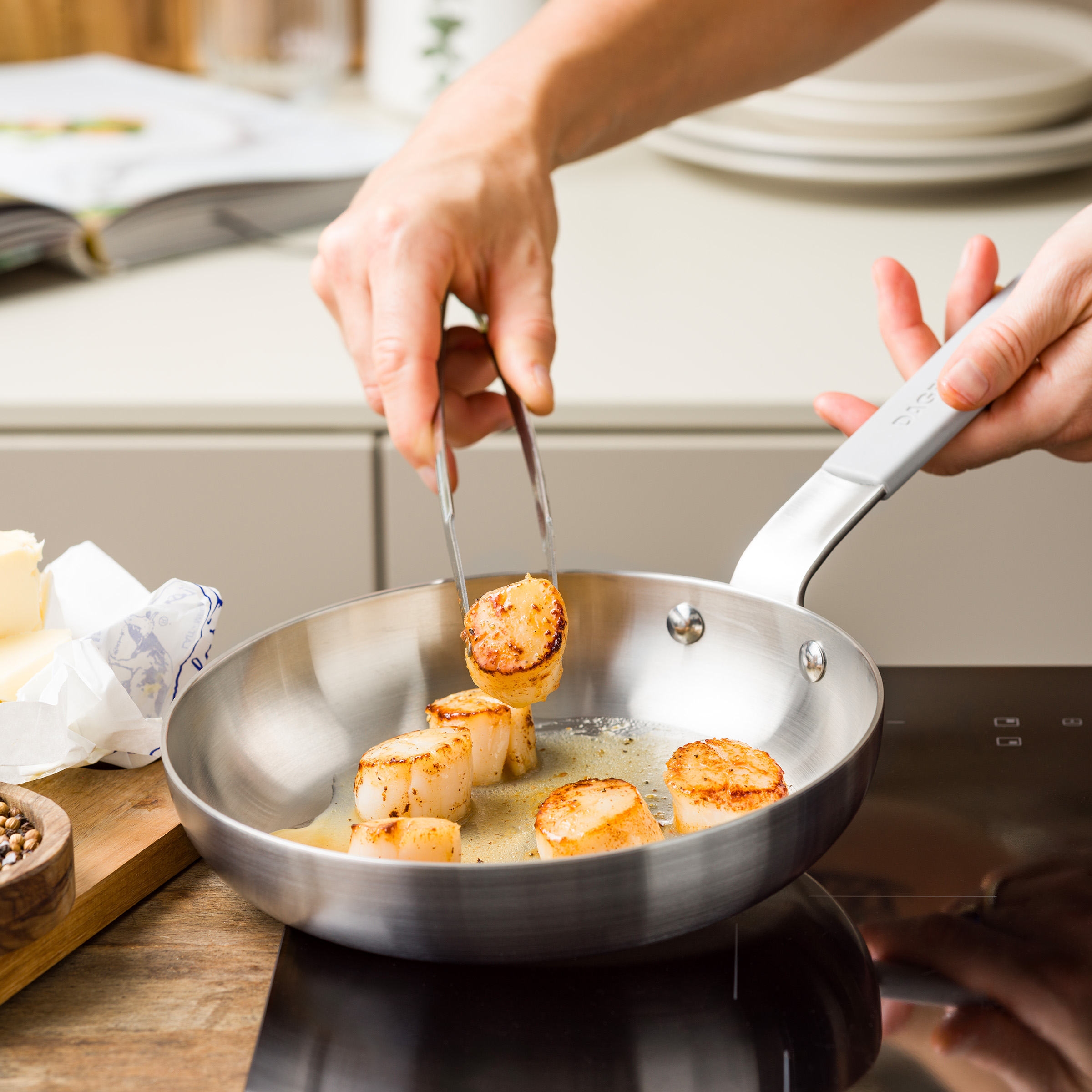 Dankzij de 3-laagse (3PLY) constructie met aluminium kern wordt de warmte snel en gelijkmatig verdeeld over de volledige pan. Geen hotspots, wel perfecte bakresultaten. Ideaal voor het bakken van vlees, vis, groenten, aardappelen en het opbouwen van rijke smaken.