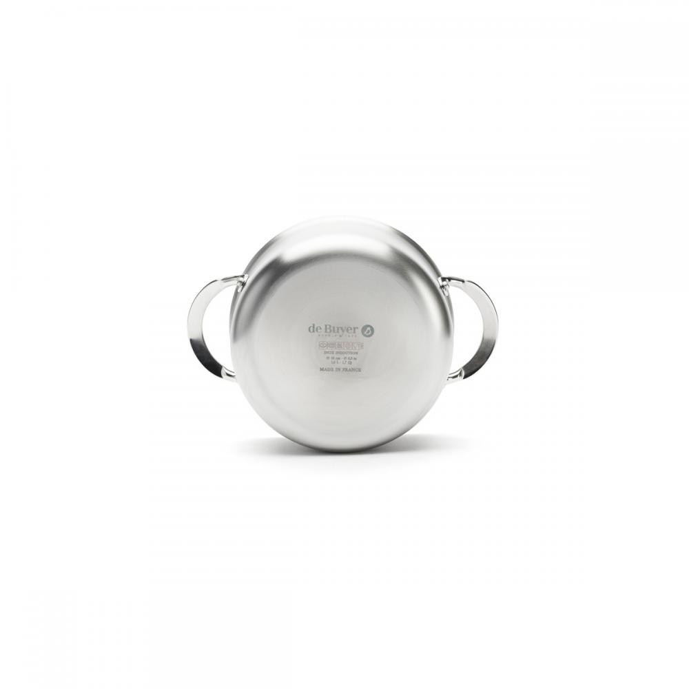hygiënisch en duurzaam, alle voordelen die u wilt. Het ontwerp uit één stuk met 3 lagen zorgt voor een gelijkmatige temperatuurverdeling en de controle over alle kookmethodes, zelfs de meest ingewikkelde. Dit ontwerp vermindert het energieverbruik. Door de maataanduiding biedt hij gebruiksgemak voor de hele keukenbrigade. De comfortabele hoge waterdichte steel maakt het hanteren en het onderhoud eenvoudig. De ergonomische romp is stevig vastgeklonken. De geborstelde afwerking benadrukt de fraaie professionele stijl.