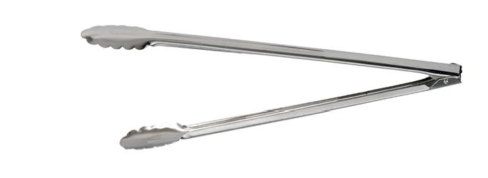 Cafetariatang van roestvrij staal met "eikenblad" punten, ideaal voor het serveren van vele gerechten zoals salades, stukken vlees of petitfours. Het kan ook worden gebruikt bij het koken in ongecoate pannen om voedsel om te draaien. Groot, zeer praktisch model voor kookstations, grills, barbecues,...