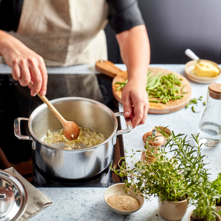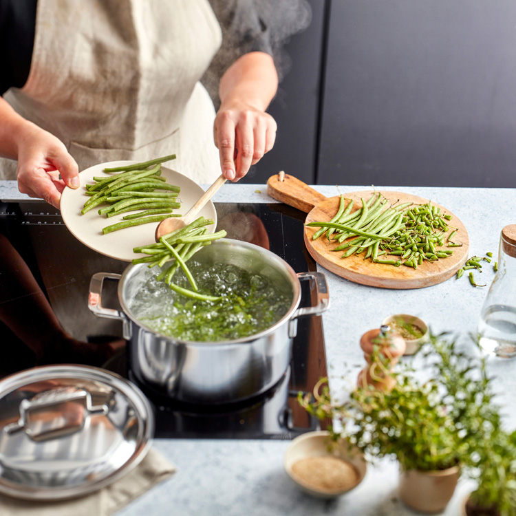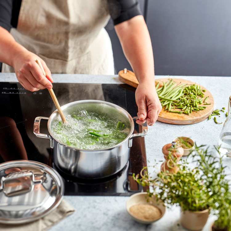Het 5-lagenmateriaal tot aan de rand zorgt voor een gelijkmatige warmteverdeling en precieze temperatuurcontrole, ongeacht je kookplaat.