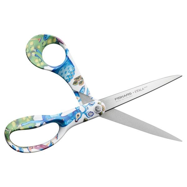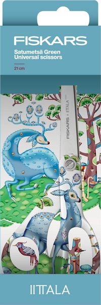 Design en functionaliteit komen samen in deze exclusieve samenwerking tussen Fiskars en Iittala (FXI). Het elegante groene Satumetsä-patroon geeft de iconische Fiskars universele schaar een frisse, natuurlijke uitstraling, terwijl de hoogwaardige materialen zorgen voor jarenlang knipplezier. Met een lengte van 21 cm is deze schaar ideaal voor dagelijks gebruik – van papier en karton tot stof, folie en andere materialen.