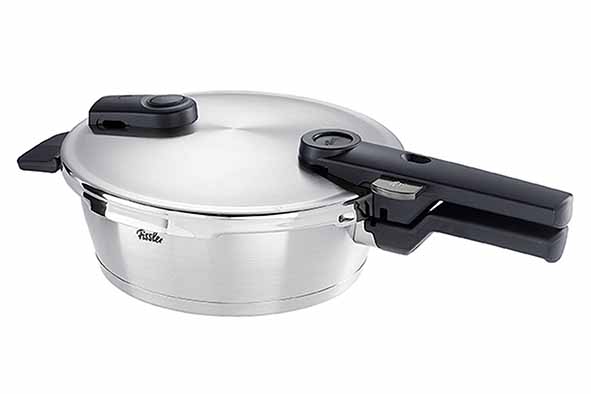 De Fissler Vitaquick snelkookpan heeft een inhoud van 3,5 liter en is gemaakt van hoogwaardig 18/10 roestvrij staal. Deze snelkookpan is ideaal voor iedereen die op een snelle en gemakkelijke manier een goede maaltijd wil bereiden. Daarnaast is deze pan extra veilig in gebruik. De Vitaquick snelkookpan heeft een strak en tijdloos design en is dankzij het hoogwaardig RVS-materiaal ijzersterk. De Vitaquick snelkookpan beschikt over twee verschillende kookniveaus: