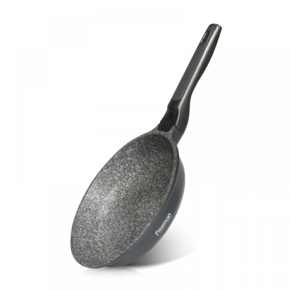 Deze Fissman koekenpan is van hoogwaardige kwaliteit. De Greblon C3 coating is in Duitsland ontwikkeld en geproduceerd. De innovatieve meerlaagse antiaanbaklaag, Greblon C3, heeft keramische deeltjes in zijn samenstelling, waardoor het de uitzonderlijke eigenschappen heeft van uitstekende roest-, schuur- en krasbestendigheid. Volledig veilig voor uw gezondheid, milieuvriendelijk en praktisch. De coating is een uitzonderlijk milieu vriendelijke grondstof. Door de speciaal toegepaste technologie voelt en ziet de coating aan als het equivalent van natuursteen. Het ruwe oppervlak is ideaal om te koken tot een heerlijke knapperige korst. Het originele ontwerp maakt PRESTIGE kookgerei de meest gewenste decoratie van elke keuken: de luxe uitstraling van de binnencoating en een stijlvol design met een diepe grafiettint aan de buitenkant. De soft touch bakeliet handgreep met de siliconen inzetstukken zijn ontworpen in een edele grijze houten effect kleur zijn aangenaam om aan te raken, antislip en koel te blijven.
