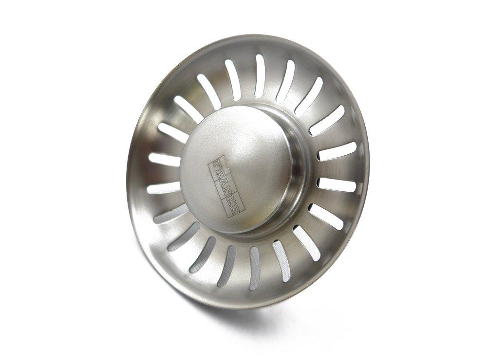 Korfplug voor Franke spoelbakken met stalen pin. Deze korfplug dient als stop om de afvoer dicht te zetten en eveneens als zeef.