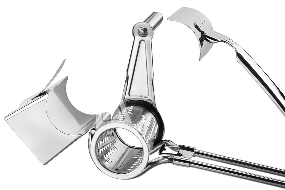 De extra scherpe LASER CUT rasptrommel zorgt voor moeiteloos raspen – tot aan het laatste stukje. Dankzij het slimme ontwerp is de rasp eenvoudig te bedienen én geschikt voor zowel links- als rechtshandigen door de verwisselbare zwengel.