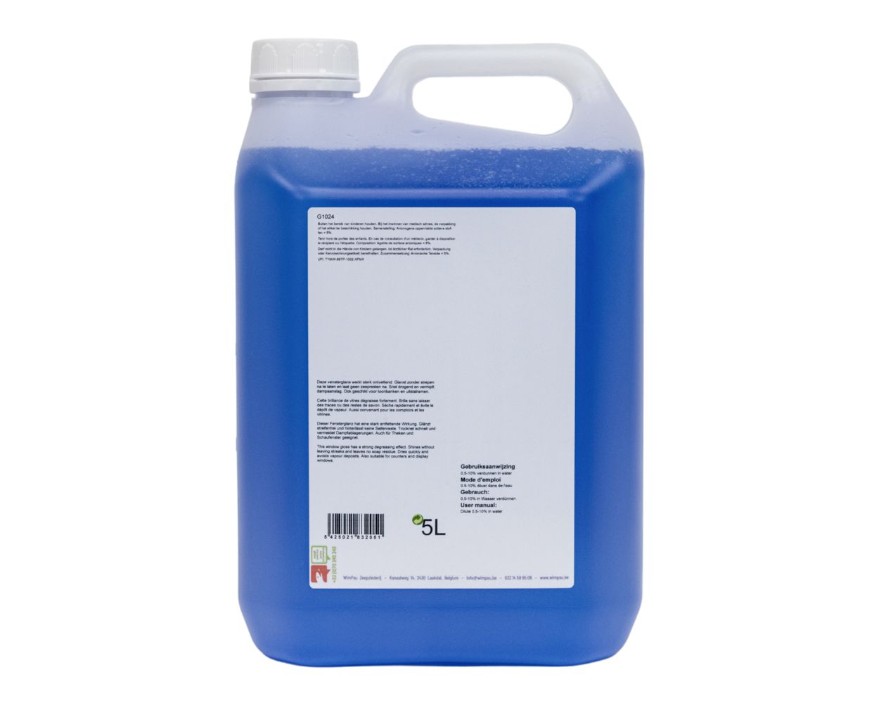 en laat geen zeepresten na. Snel drogend en vermijdt dampaanslag. Ook geschikt voor toonbanken en uitstalramen. - Gebruiksaanwijzing: 5-100% verdunnen in water