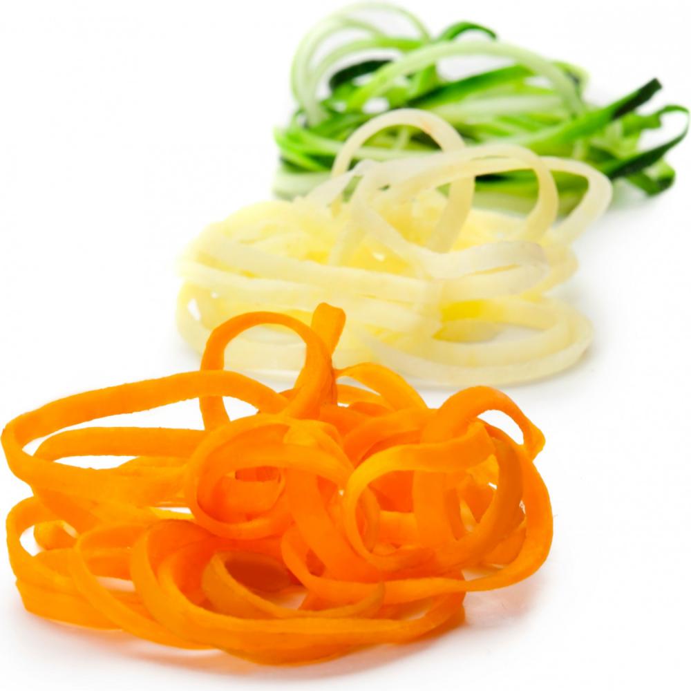 Deze spiraal- julienne snijder heeft 3 verschillende messen. Deze hebben allemaal een verschillende dikte of vorm van snijden. Ideaal voor het snijden van wortelen, komkommers,...