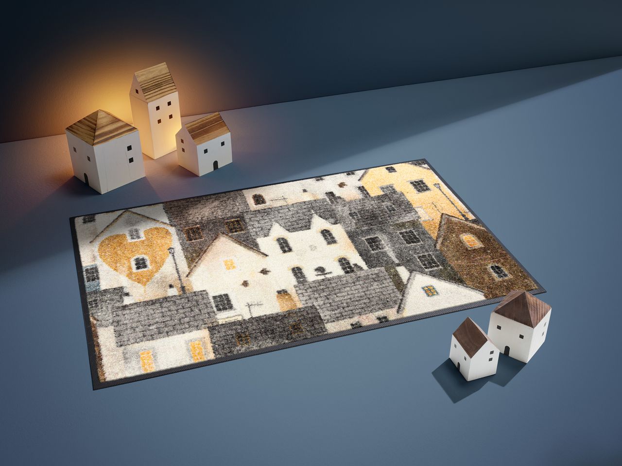 De Kleen-Tex Wash+Dry deurmat Urban Blocks brengt een stijlvolle, stedelijke sfeer in je inkom. Het speelse ontwerp met gestileerde huisjes in grijs-, wit- en okertinten geeft deze mat een warme, urban uitstraling.