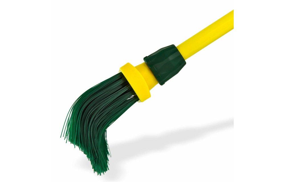 Op zoek naar de ideale bezem voor in de tuin? Zoek niet verder! Deze tuinbezem kan alles aan. Vochtige bladeren in de herfst? Dennennaalden in de groeven tussenin de tegels? Geen enkel probleem voor deze tuinbezem! Dankzij de gebogen borstelharen vergroot u letterlijk uw grip op alle vuil. De gebogen borstelharen komen in alle spleten en groeven. Vochtige bladeren worden efficiënt opgeschept door de gebogen borstelharen in plaats van eroverheen vegen zoals met een reguliere bezem. U zult merken dat het schoonvegen van uw tuin en terras nog nooit zo eenvoudig en licht is geweest. De bezem is geschikt voor allerlei ondergronden van tegels, tuinpaden, klinkers tot beton.