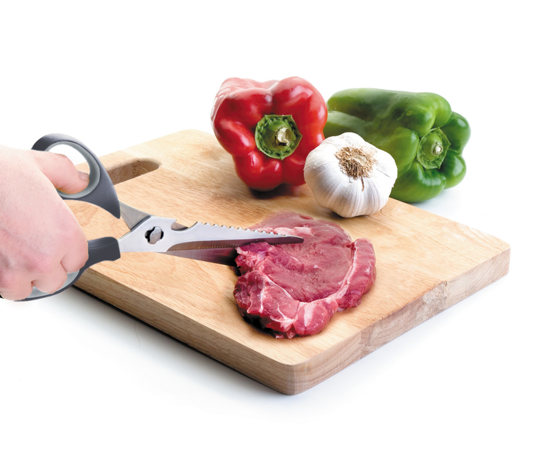 Gebruik de scherpe bladen om moeiteloos vlees, kruiden, groenten of verpakkingen te knippen. De geïntegreerde schrapfunctie maakt het eenvoudig om bijvoorbeeld vis te ontschubben of groenten schoon te maken. Dankzij het ergonomische ontwerp ligt de schaar comfortabel in de hand, voor veilig en nauwkeurig gebruik.