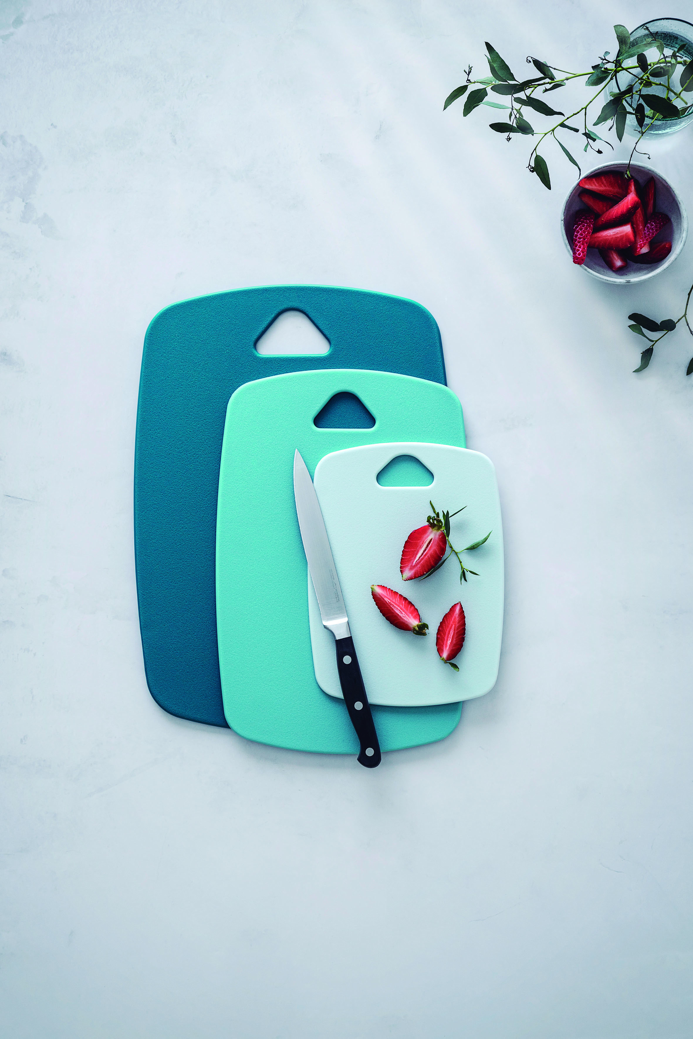 - Drie snijplanken in verschillende kleuren.
