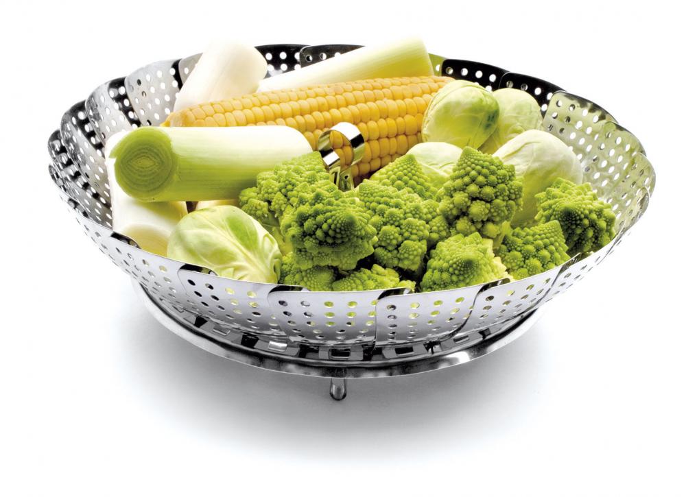 Stoom je groenten gemakkelijk met deze stoommand, en je behoud alle vitamines! De stoommand is uit te vouwen en daardoor geschikt voor verschillende groenten. De stoommand is gemaakt van roestvrij staal. De stoommand is verstelbaar van 18 tot 28 cm. De stoommand is gemakkelijk te reinigen in de vaatwasser na gebruik.