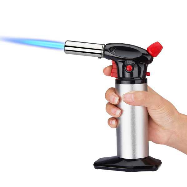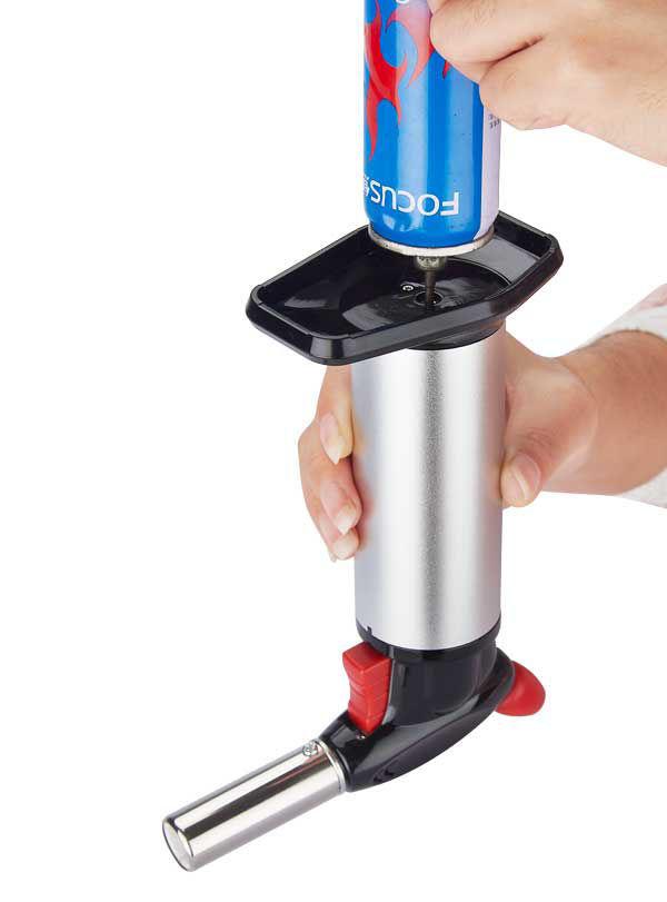 Crème brûlée brander ofwel keukenbrander. Deze brander is uitermate geschikt om voedsel heel licht te karamelliseren. Bij crème brûlée zorgt dit voor het heerlijke en knapperige laagje aan de bovenkant. Je kunt deze keukenbrander natuurlijk ook gebruiken voor vis vlees of gebak.