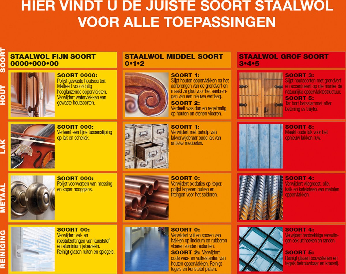 - Gebruik handschoenen en knip de staalwol op maat om snijwonden te voorkomen.