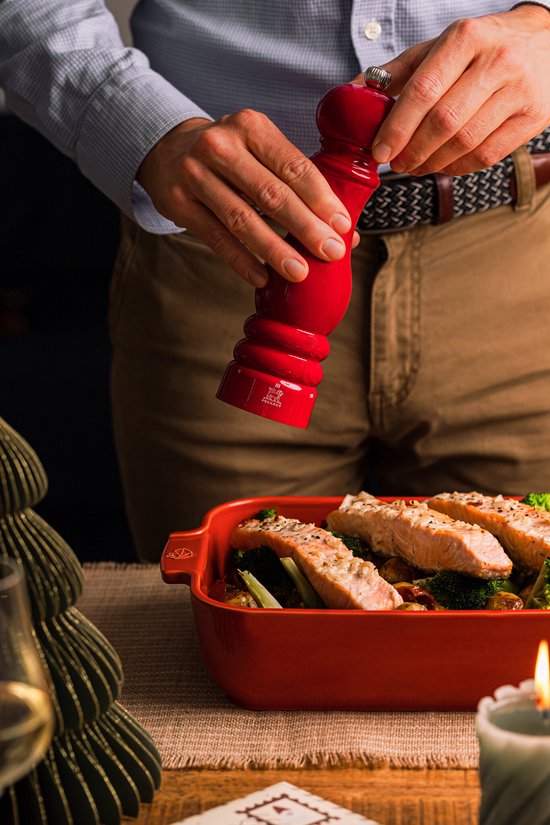 De schotel is bovendien stapelbaar met andere formaten uit de Peugeot-collectie, waardoor je makkelijk plaats bespaart in je keukenkasten, een slimme oplossing voor elke thuiskok.
