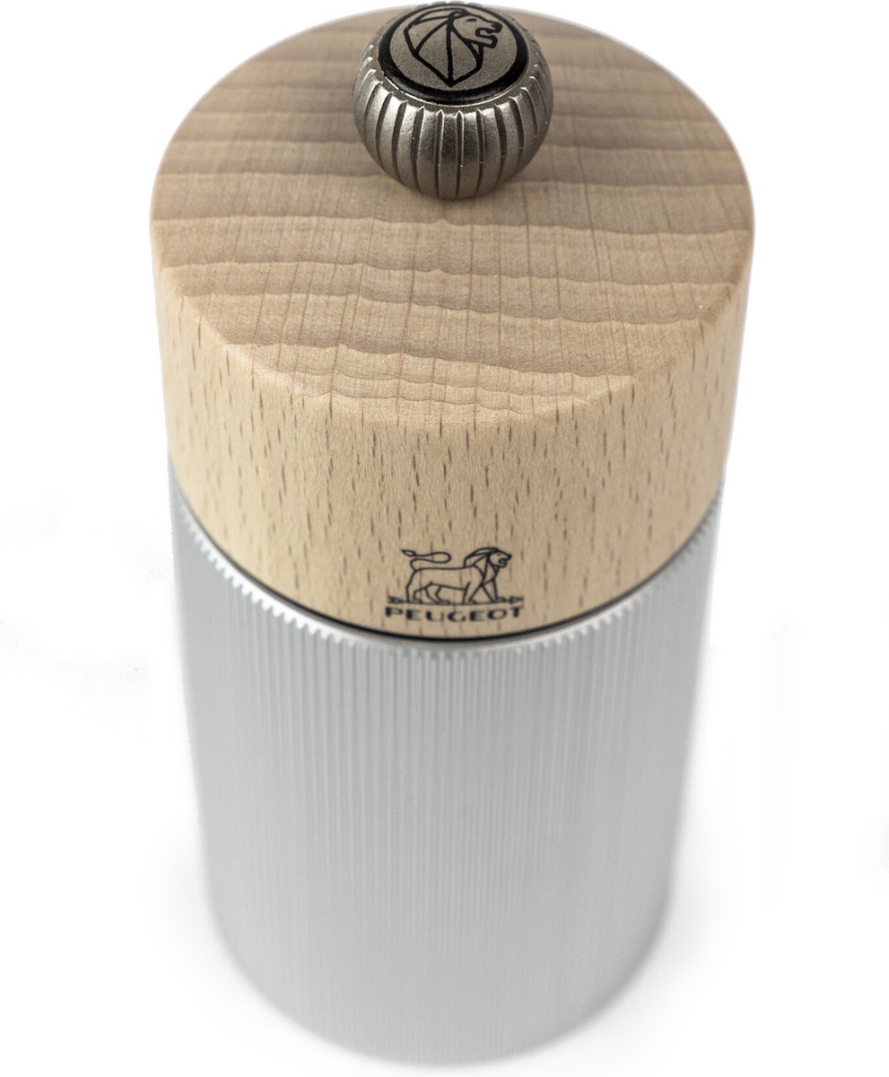 De prachtige Line pepermolen combineert natuurlijk hout en geribbeld aluminium voor een elegant en visueel aantrekkelijk tafelmodel. Met een hoogte van 18 cm is deze compacte molen perfect voor gebruik aan tafel. Gemaakt in Frankrijk van PEFC-hout uit Franse bossen, beschikt deze molen over het beroemde Peugeot-maalwerk met levenslange garantie. Met de knop bovenaan stel je eenvoudig de gewenste maalgraad in, waardoor je altijd de perfecte maling voor je peper krijgt. De Line pepermolen valt dankzij zijn geribbelde body en kop uit natuurlijk hout meteen op en vormt een perfect duo met de Line Aluminium zoutmolen, of een contrasterend duo met de Line Carbone. Zo kun je peper en zout snel onderscheiden.