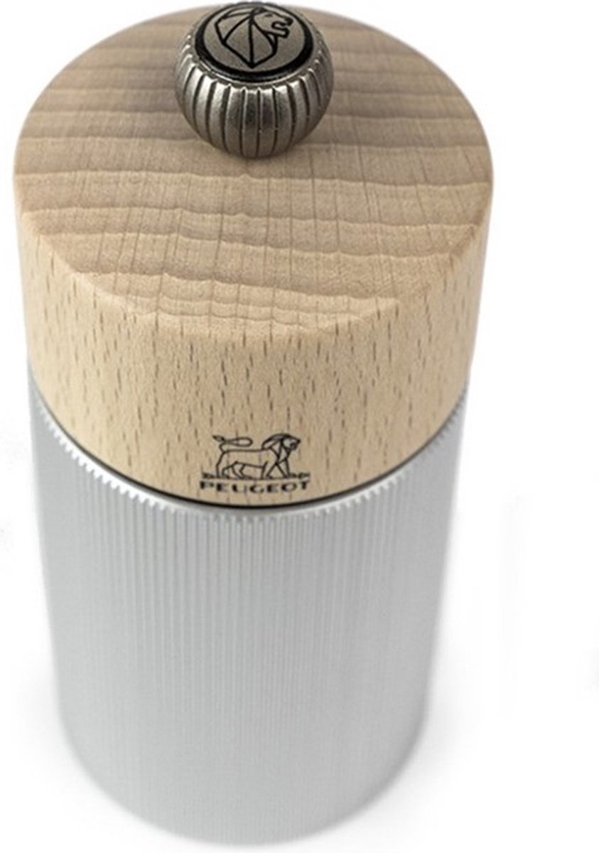 De prachtige Line zoutmolen combineert natuurlijk hout en geribbeld aluminium voor een elegant en visueel aantrekkelijk tafelmodel. Met een hoogte van 18 cm is deze compacte molen perfect voor gebruik aan tafel. Gemaakt in Frankrijk van PEFC-hout uit Franse bossen, beschikt deze molen over het beroemde Peugeot-maalwerk met levenslange garantie. Met de knop bovenaan stel je eenvoudig de gewenste maalgraad in, waardoor je altijd de perfecte maling voor je zout krijgt. De Line zoutmolen valt dankzij zijn geribbelde body en kop uit natuurlijk hout meteen op en vormt een perfect duo met de Line Aluminium pepermolen, of een contrasterend duo met de Line Carbone. Zo kun je peper en zout snel onderscheiden.