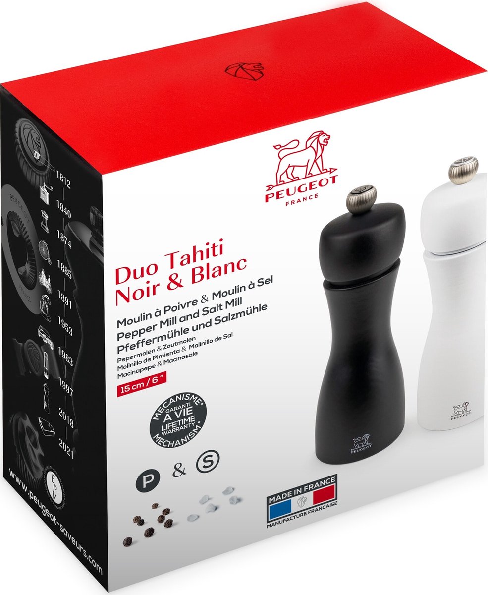 Peugeot Tahiti Manuele Duo Peper- en Zoutmolen uit Hout - 15cm - Zwart & Wit