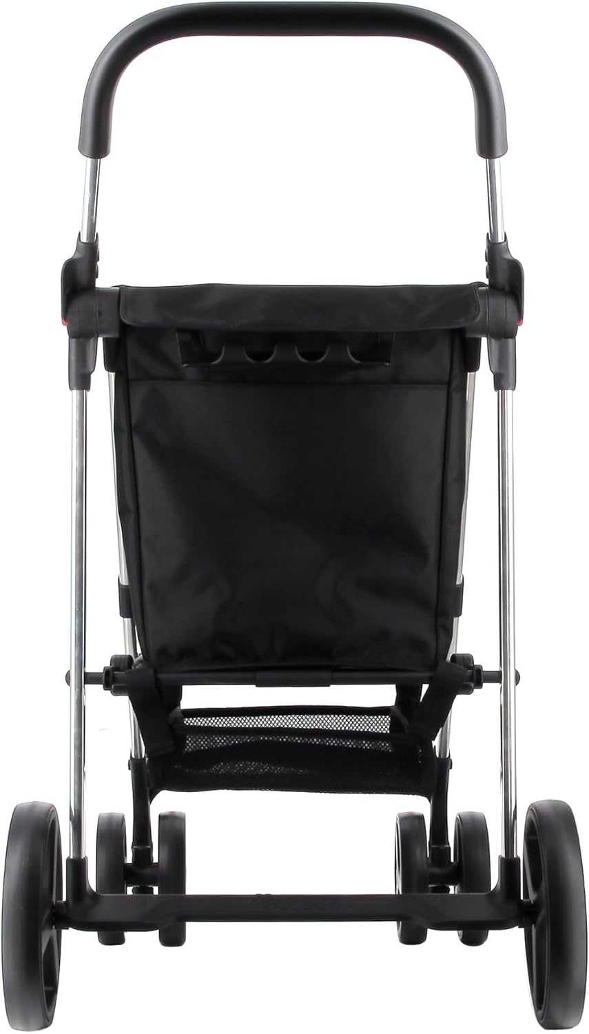 Dankzij het innovatieve 4-wielsysteem, waarvan de twee voorwielen 360° kunnen draaien, navigeer je moeiteloos door smalle gangpaden of over oneffen terrein. Obstakels zoals stoepranden zijn eenvoudig te nemen dankzij de geïntegreerde voetsteun. Ondanks de grote capaciteit is de trolley verrassend licht, dankzij het gebruik van geavanceerde materialen van de nieuwste generatie.