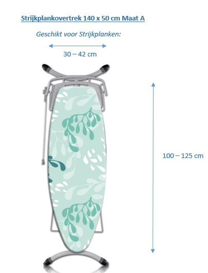 - De strijkplankhoes zelf meet 134 cm x 49 cm.
