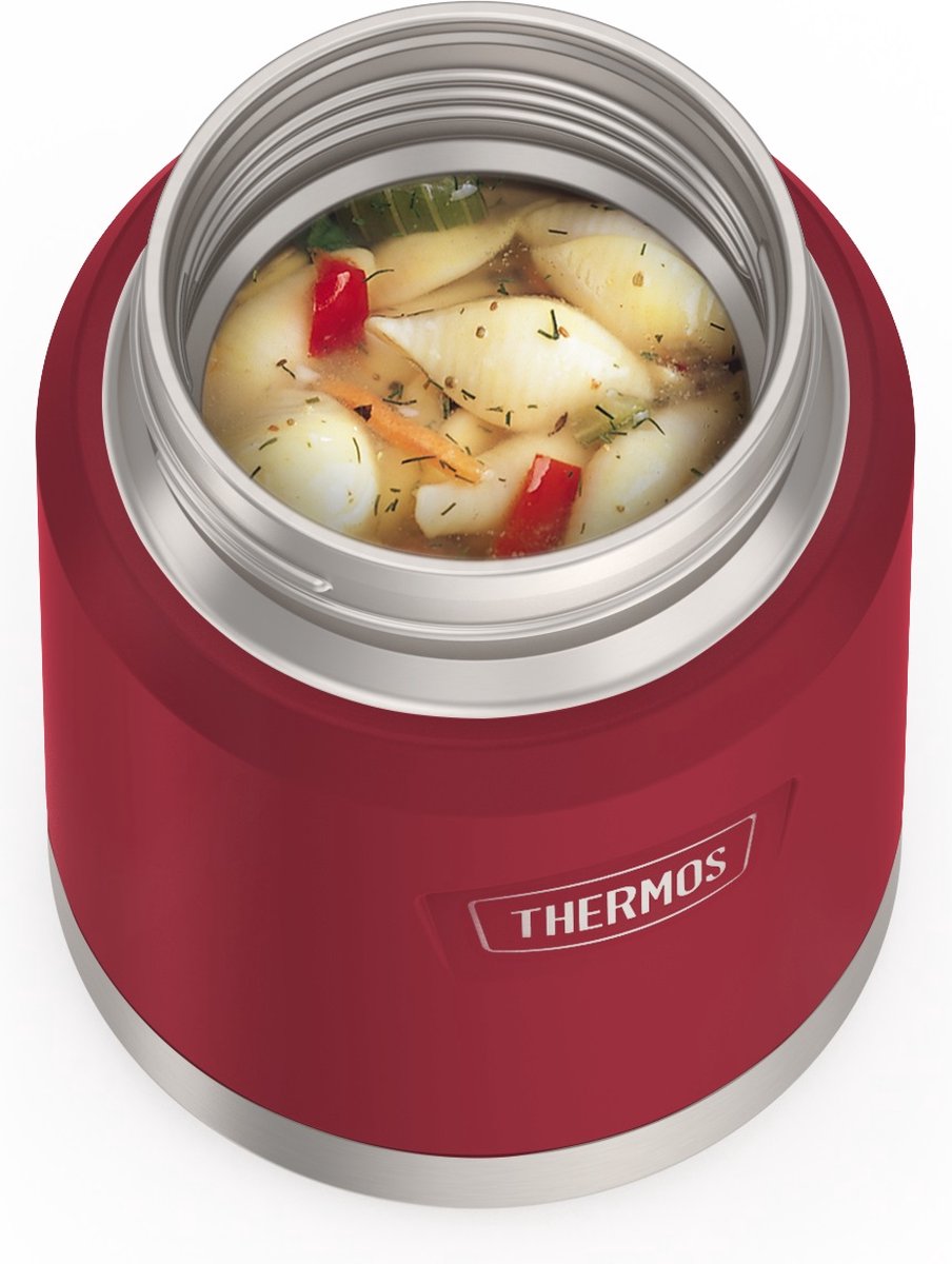 De ICON FOOD JAR geïsoleerde voedselcontainer van Thermos maakt indruk met zijn extra grote opening bij het vullen. Het praktische draaideksel maakt het gebruik eenvoudig en ongecompliceerd en het geïsoleerde druk ontlastende deksel zorgt voor extra veiligheid. Ideaal is dat je altijd je bestek bij je hebt dankzij de opvouwbare lepel. Met de beste isolatie kun je 10 uur genieten van warm eten en 24 uur van gekoeld eten. Het stijlvolle design van de ICON FOOD JAR gaat hand in hand met praktisch gemak. Reinigen in de vaatwasser is snel en eenvoudig.
