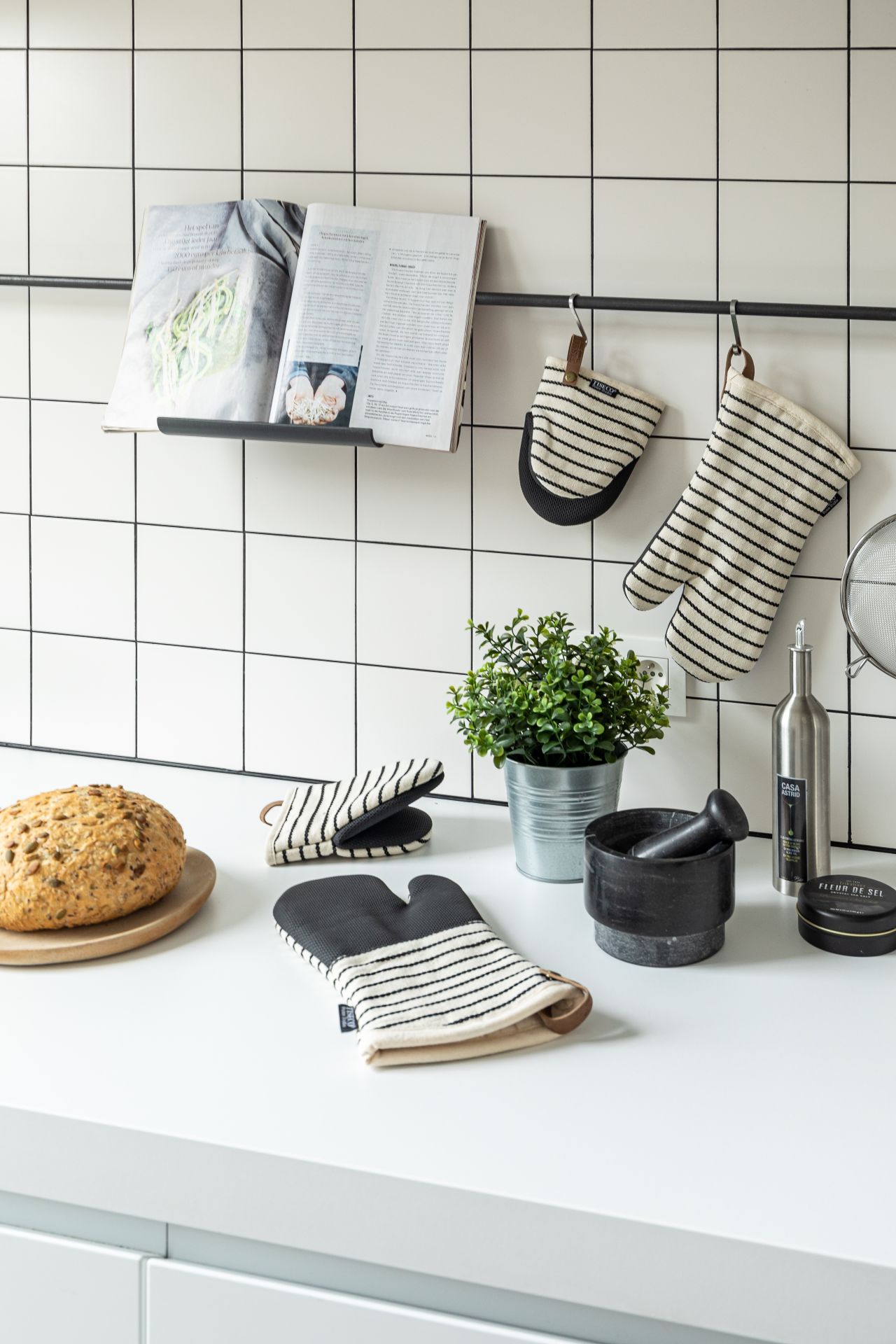 Combineer de Sherlock Cable grippers met de bijpassende ovenwanten en schort uit dezelfde collectie voor een harmonieus geheel in je keuken.