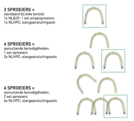 Verbindt twee sproeiers met de borstel en zorgt voor de aansluiting met de waterslang.