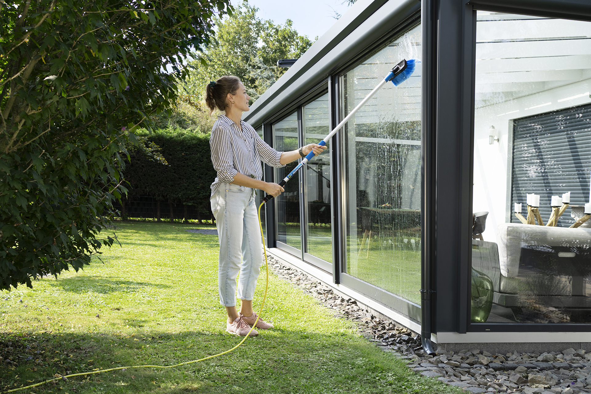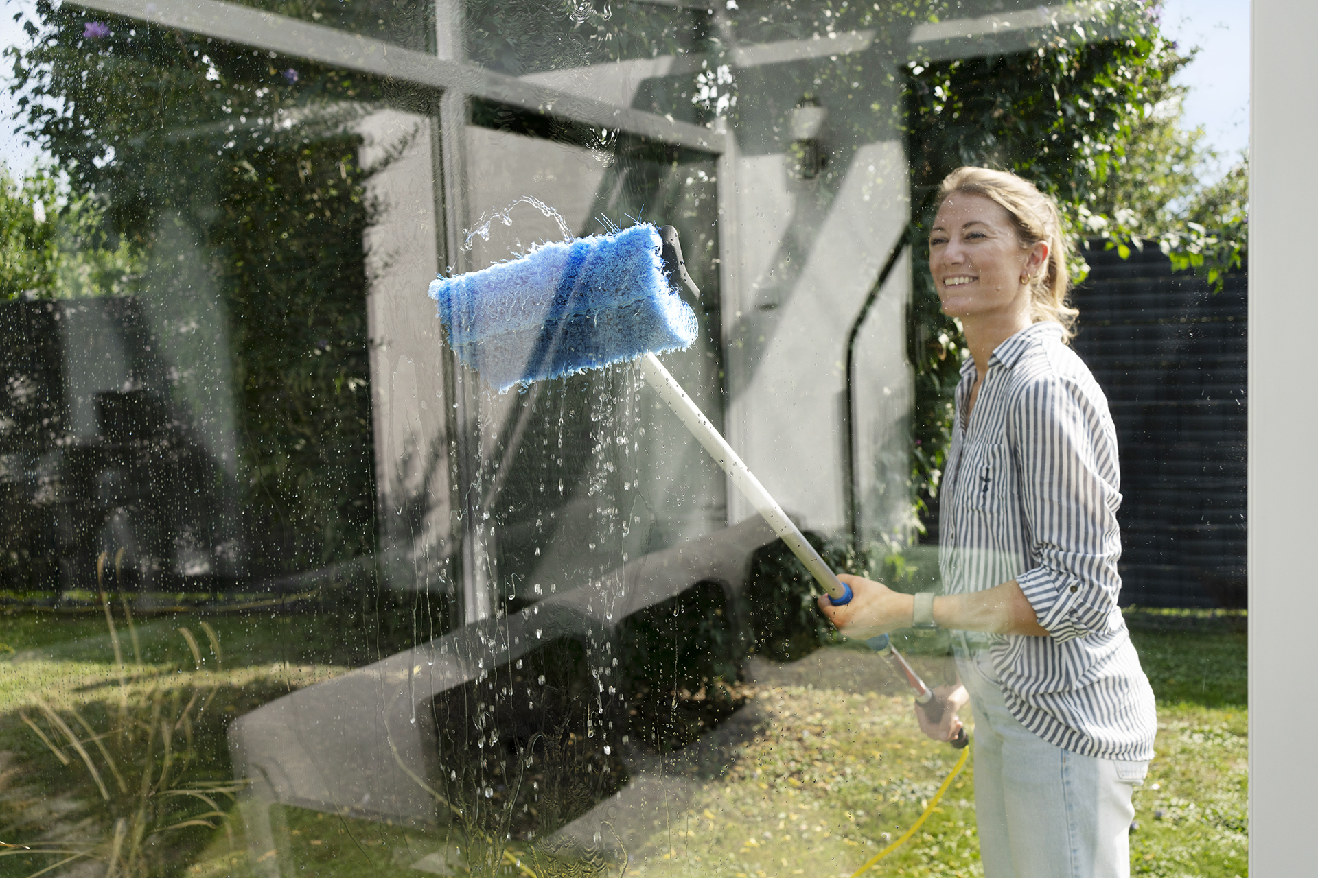 Zeg maar vaarwel tegen strepen, kalkaanslag en eindeloos nadrogen! Met de UNGER HighFlow Zuiver Water Starter Kit reinig je ramen, raamdeuren, veranda’s, balkonpanelen, caravans en andere buitenoppervlakken streeploos én zonder schoonmaakmiddelen. Gewoon met zuiver water – zoals professionele glazenwassers het doen. UNGER is al sinds 1964 de nummer 1 in professionele glasreiniging, en met deze starter kit haal je voor het eerst dezelfde technologie veilig, makkelijk en compact in huis.