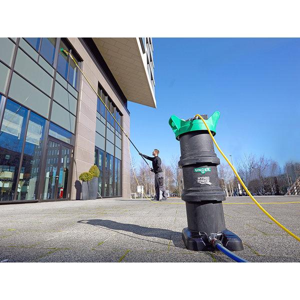 Prestaties op het allerhoogste niveau door de Unger HydroPower filtersystemen. Deze zijn uitermate geschikt voor het reinigen van glazen gevels, zonnepanelen, woonhuizen, zonnepanelen, kantoren, showrooms en veel meer! Dankzij dit filtersysteem met zuiver wateruitgang reinigt u gemakkelijker en droogt alles streeploos op. Unger HydroPower filters zijn voorzien van een harsvulling welke leidingwater ontdoet van kalk en mineralen. Het ontstane Zuivere water is nu voorzien van bindingsionen, welke het vuil van de te reinigen oppervlakken absorberen. Als het water het vuil geabsorbeerd heeft, kunnen de "vuildeeltjes" eenvoudig worden weggespoeld. Vervolgens verdampt het zuivere water zonder daarbij enige residu achter te laten, het oppervlak droogt streeploos op! Zodra de harsvulling is verbruikt kan deze zeer eenvoudig worden verwisseld, de TDS-meter op de filter geeft dit aan. Dit toestel en aansluitingen zijn volledig Gardena compatibel.