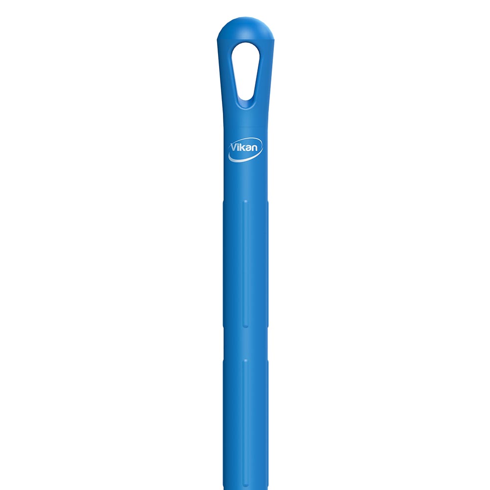 De Ø van de steel is geoptimaliseerd voor comfortabele grip tijdens het gebruik. Het gebruikte materiaal in het handvat zorgt voor uitstekend comfort, zelfs in een koude omgeving van koeling en in vriezers. De stelen zijn 6% lichter, chemisch resistent en voldoen aan Richtlijn (EU) No 10/2011. Het hygiënisch ontwerp en gebruikte materiaal minimaliseert het risico op besmetting en beknelling. De steel is tevens gemakkelijk te reinigen en te onderhouden. Deze Vikan steel met schroefdraad voor aansluiting op vloerwissers en borstels van Vikan.