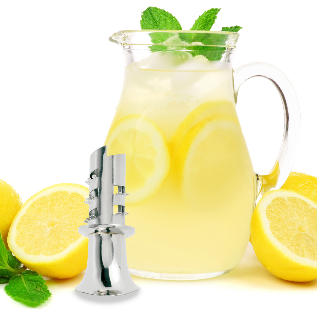De roestvrijstalen citroenschenker gebruikt u door de schenker in een citroen te schroeven. Door vervolgens zacht in de citroen te knijpen, perst u het sap uit de citroen. Door de handige uitlopende tuit kunt u het sap bijvoorbeeld eenvoudig over een salade sprenkelen.