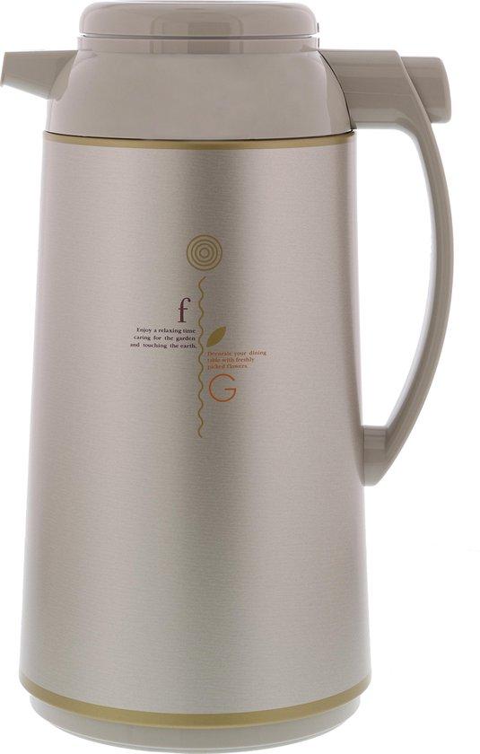 Deze isoleerkan met roestvrijstalen behuizing is voorzien van een comfortabel handvat. De thermoskan heeft een dubbelwandige glazen binnenfles voor een optimale warmteretentie. Bediening met drukknop op het handvat. Het deksel opent door dit los te draaien voor gemakkelijk te vullen en te reinigen. Deze koffiekan houdt uw warme dranken 12u. warm en koude dranken 24u. koud.