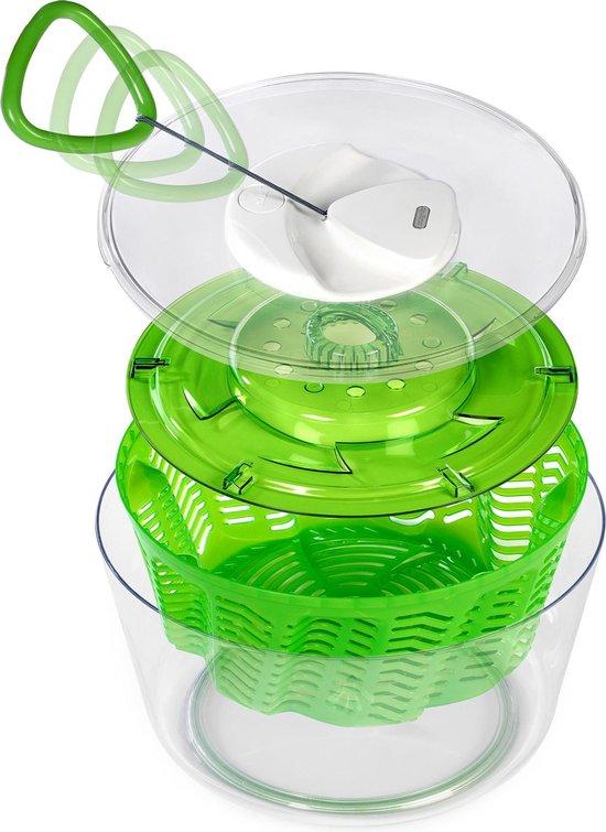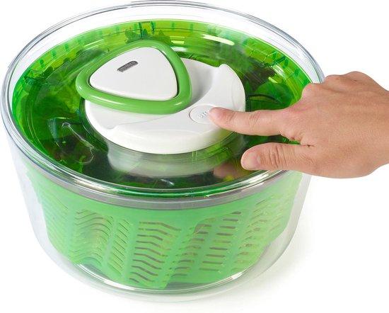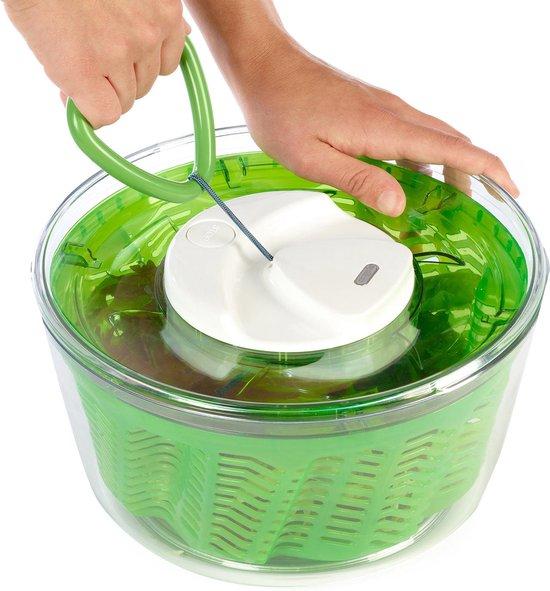 Deze nieuwe en nóg betere Easy Spin slacentrifuge van Zyliss heeft een gepatenteerd vergiet met Aquavent technologie en verwijdert 25% meer water dan een klassieke slazwierder. De luchttoevoer via de openingen in het deksel en de bodem van de mand zorgen voor het efficiënt afvoeren van het overtollige water. In enkele seconden tijd was en droog je 4 tot 6 porties sla. Het uittrekbare snoer en de stopknop met remfunctie verwijderen al het overtollige water en houden de sla luchtig. De bowl heeft een antislipbodem en is stabiel tijdens het gebruik. Gebruik de mand als vergiet om je sla onder de kraan te wassen. De extra heldere bowl kan na het drogen gebruikt worden als slakom. Blijven er nog slaresten over? Dan zijn bowl met deksel perfect om deze te bewaren in de koelkast. Het deksel en binnendeksel kan je eenvoudig van elkaar verwijderen voor makkelijk schoonmaken.