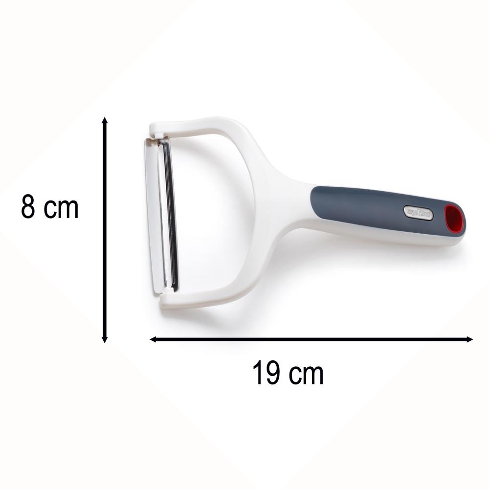 De Zyliss brede groenteschiller is ontworpen om de schiltijd te verkorten en tegelijkertijd perfecte schillen de creëren van aubergine, zoete aardappelen, kool, aardappelen en alle andere groenten. Deze dunschiller heeft brede, met zuur geëtste roestvrijstalen messen die de schiltijd halveren. De brede dunschiller is op maat gemaakt om comfortabel in de hand te passen.