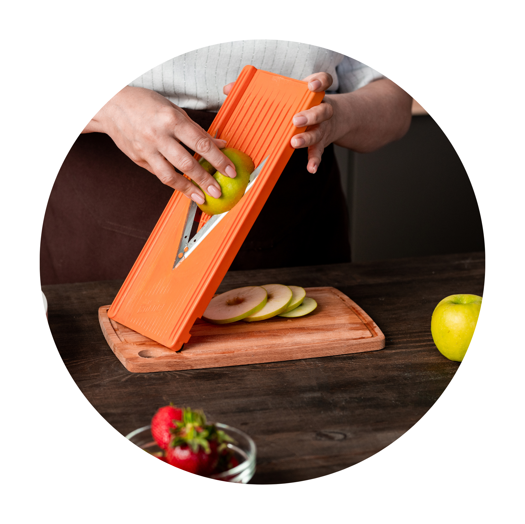 Een goede mandoline is daarom een onmisbare keukenhulp. Met één beweging snijd je groenten en fruit in de perfecte vorm: snel, veilig en professioneel.
